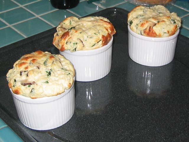 7. Bake souffles on a sheet pan at 425° for about 16 minutes, until puffy and browned on the outside. |